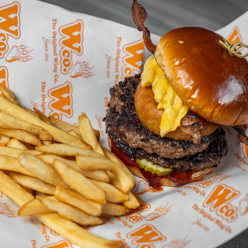 Served on a grilled brioche bun with our legendary fries | Wing Co. B.A.B.A. Burgers: All B.A.B.A. Burgers come with 2 patties for 16.50 or single patty option for 13.50